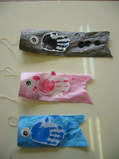 〜こいのぼり〜 ”障子紙を染めて、手型のひれをつけて