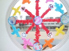 《 飾りを作ろう 》高等部3年生の卒業式後の見送りのため、飾りを作りました。円窓を生かした飾り付けにしました。