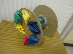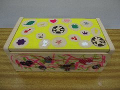 スパッタリングとステンシルで、木箱にもようをつけました。世界にたった一つの宝物になりました。