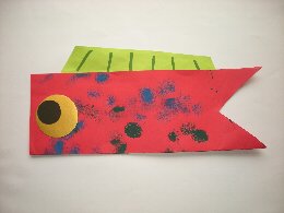 「たんぽでトントン、こいのぼりに模様を付けたよ。」