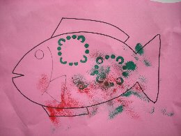 「たくさんスタンプを押して魚のうろこや花の模様ができたよ。」