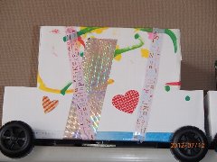 空き箱を使って作りました。 スロープで走らせて楽しみました。
