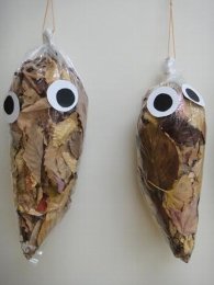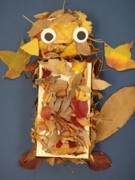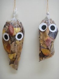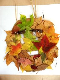 「おちばでつくろう」 学校の近くの出島西公園へおちばやドングリ、小枝をひろいに行きました。そして、そして・・・