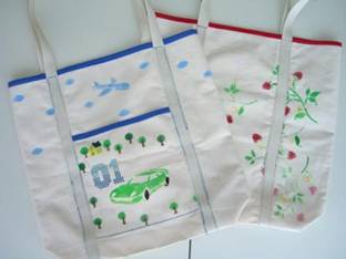 ・ 刺し子、ステンシル、飾りミシンなどで装飾しました。
